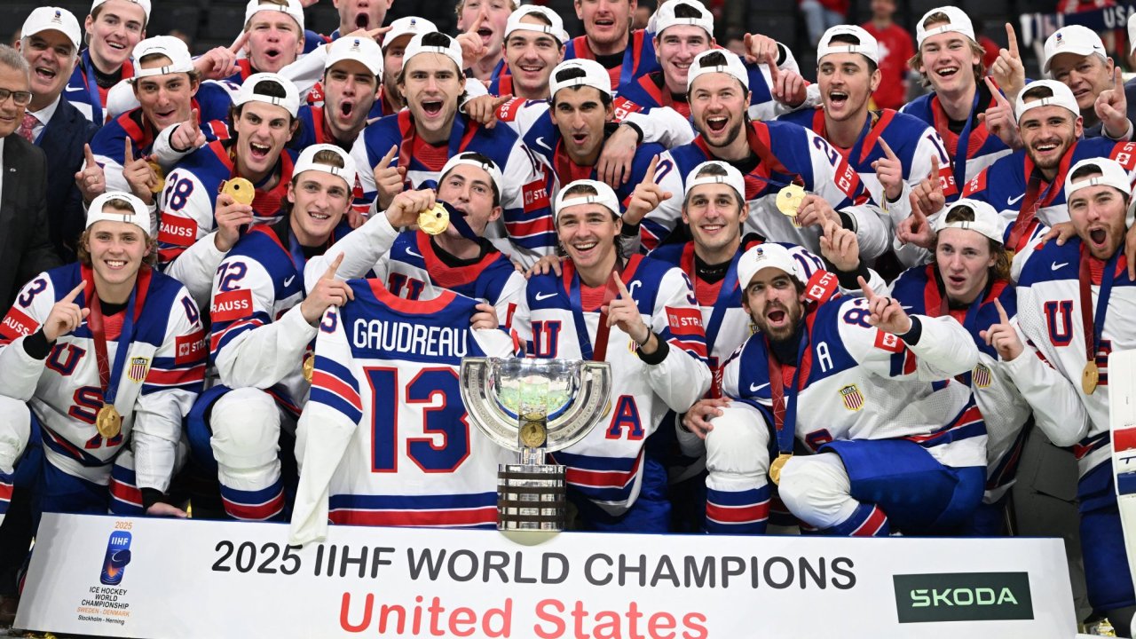 Американцы прервали серию без побед на чемпионатах мира, которая длилась 92 года. На церемонии награждения хоккеисты сборной США держали джерси нападающего Джонни Годро – он трагически погиб в августе 2024 в автокатастрофе.