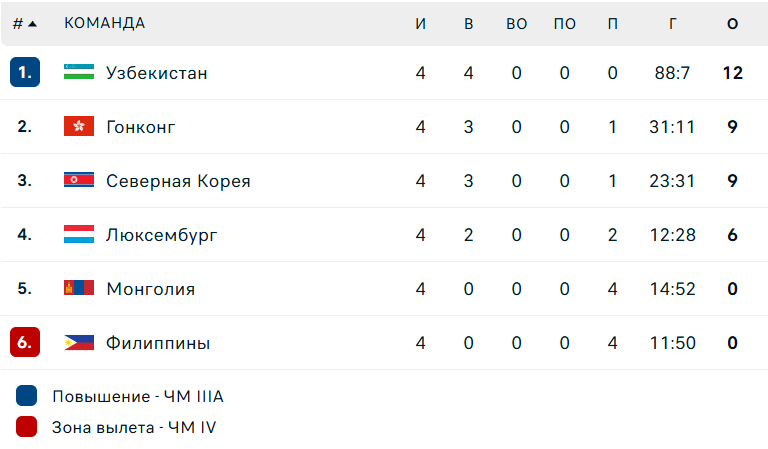 После четырех матчей у Узбекистана - четыре победы с общим счетом 88:7, почти гарантированные золото и повышение в классе – из группы B в группу А.