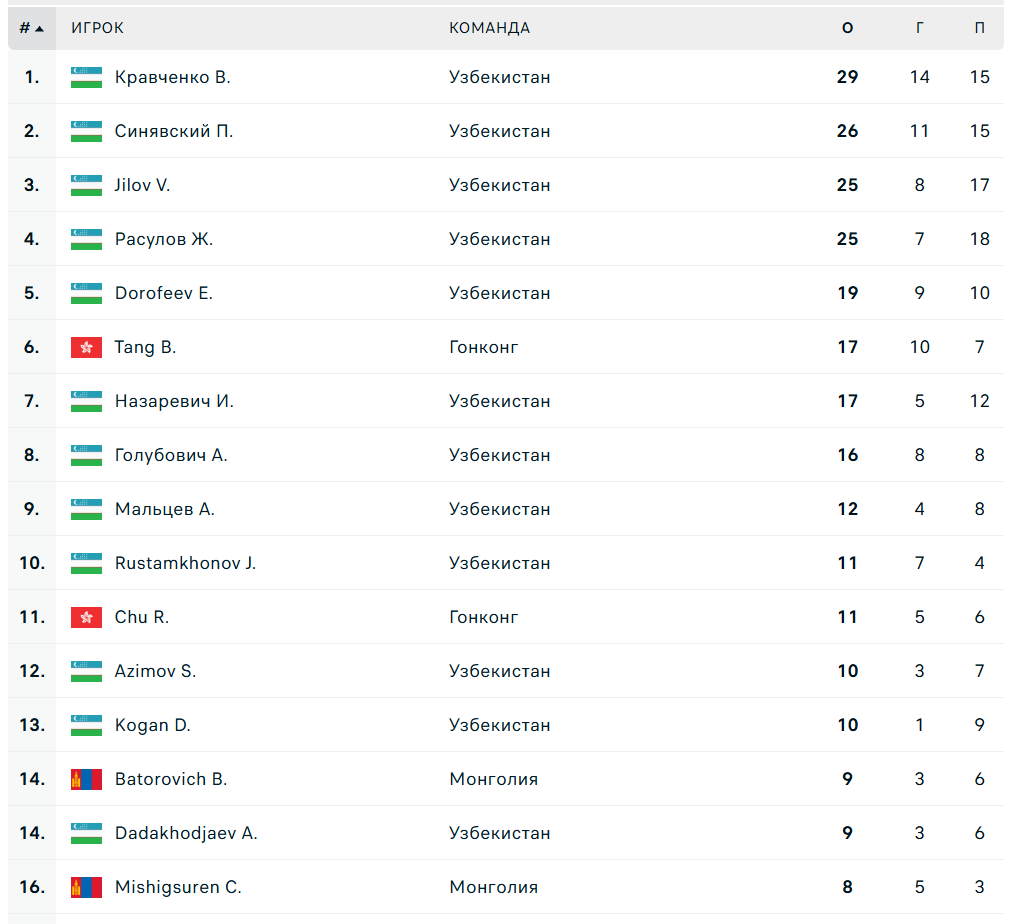 Еще страшнее выглядит таблица лучших бомбардиров - в топ-10 только один игрок не из Узбекистана.