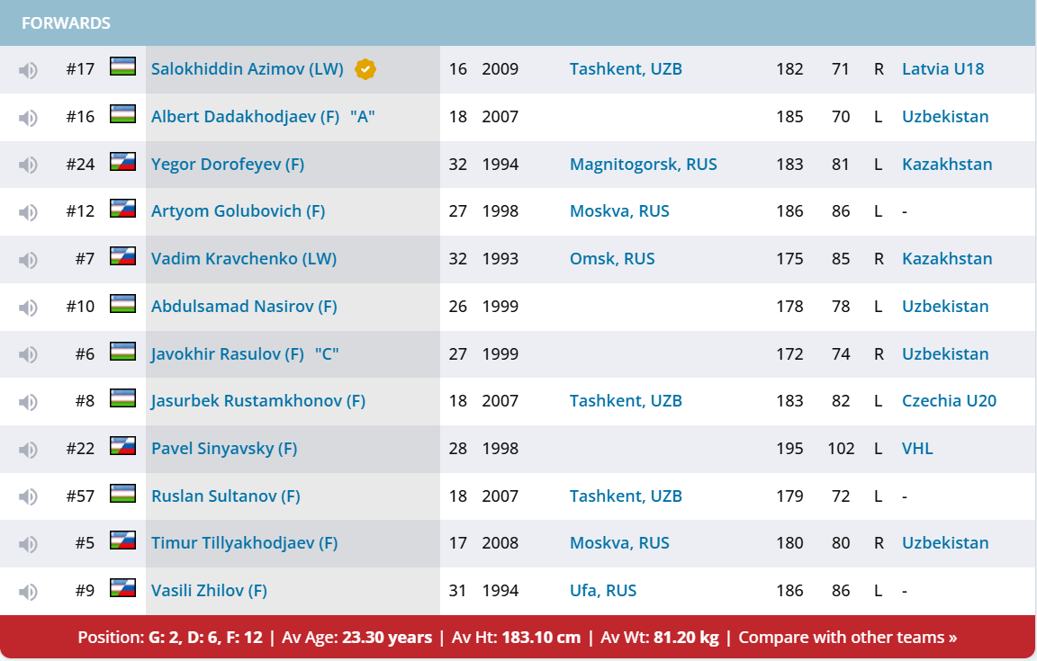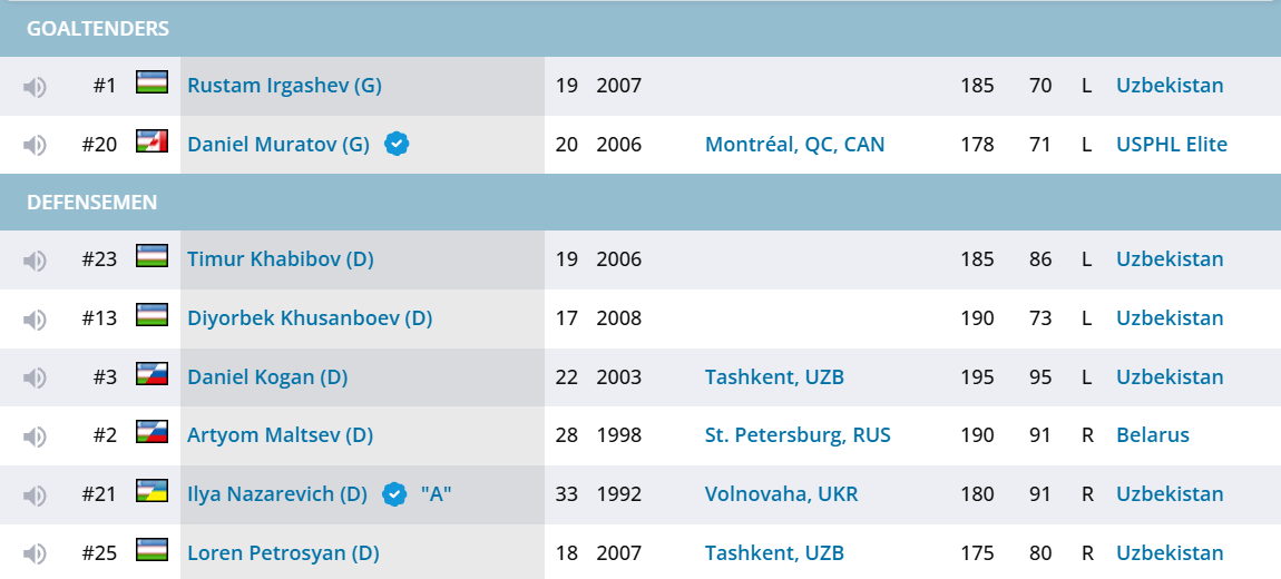 Узбекистан привлекает в состав ряд натурализованных хоккеистов. Все - россияне, но некоторые из них имеют солидный опыт игры в чемпионате Казахстана.