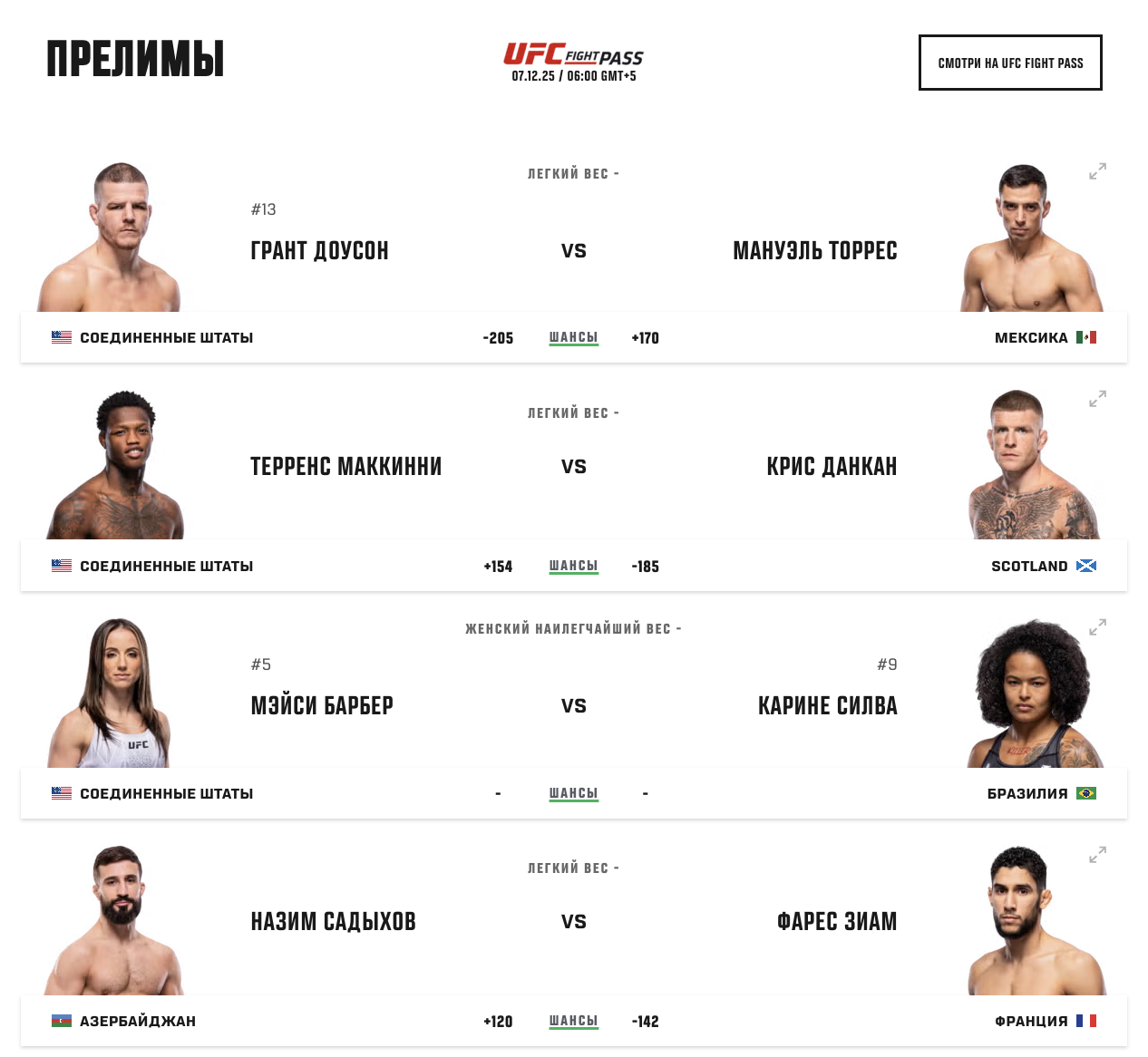 07:30. Грант Доусон 🇺🇸 (#13) vs Мануэль Торрес 🇲🇽 (70,3 кг)