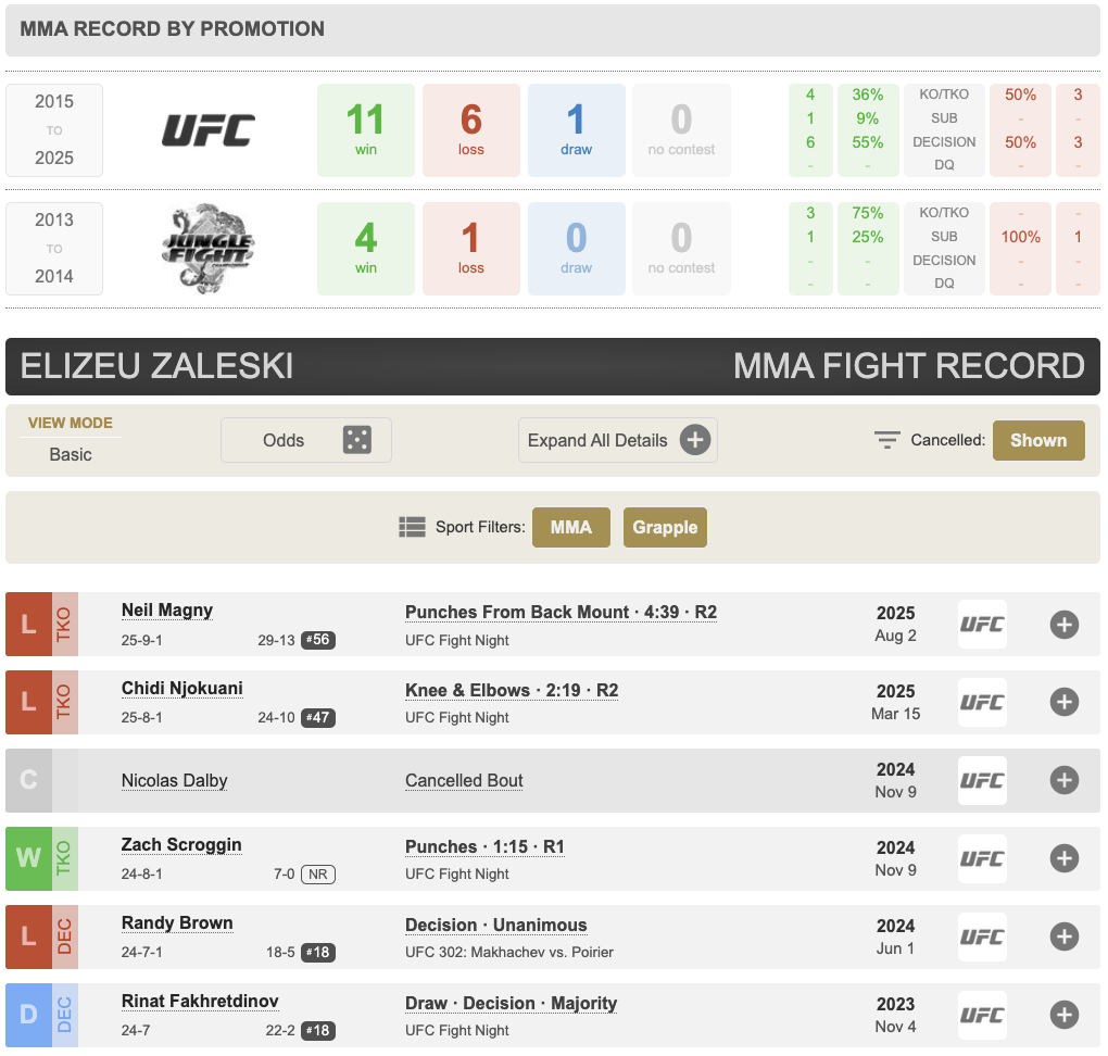 - Элизеу Залески (Бразилия) - 25-10-1 (11-6-1 в UFC), 39 лет