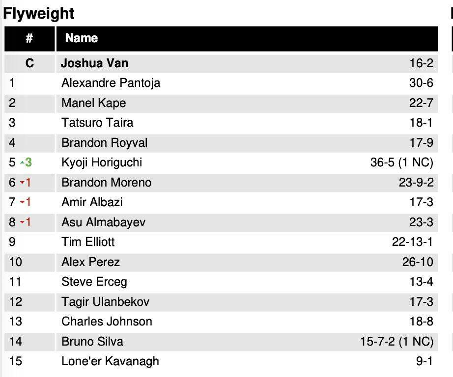 Казахстанский боец Асу Алмабаев теряет одну позицию в рейтинге наилегчайшего веса UFC, сообщает Спорт Шредингера.