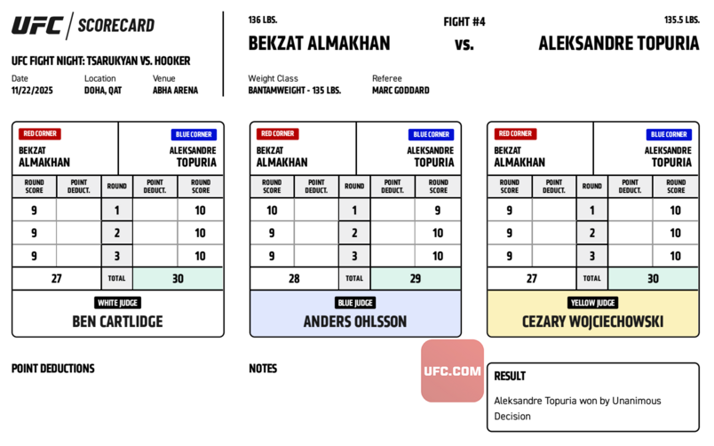 У Топурии стало 2-0 в UFC, у Алмахана теперь 1-2. Казахстанец дебютировал с поражением решением от Умара Нурмагомедова, а после нокаутировал Брэда Катону за 64 секунды.