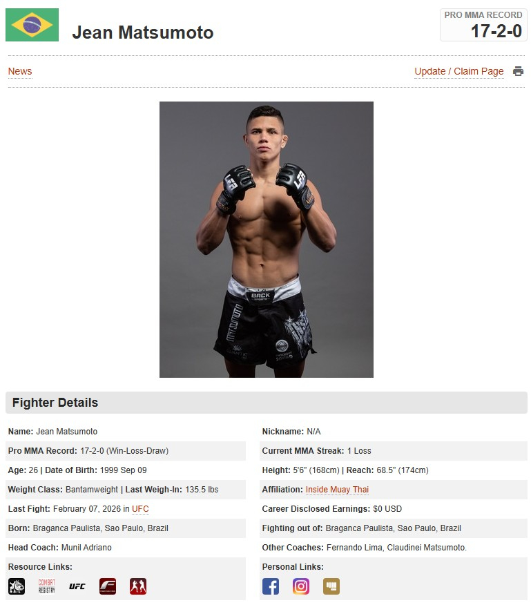 Мацумото тоже проиграл в последнем поединке: в начале 2026 года он уступил раздельным решением судей Фарид Башарат. Таким образом, для обоих бойцов июньский поединок станет шансом вернуться в гонку в легчайшем дивизионе.