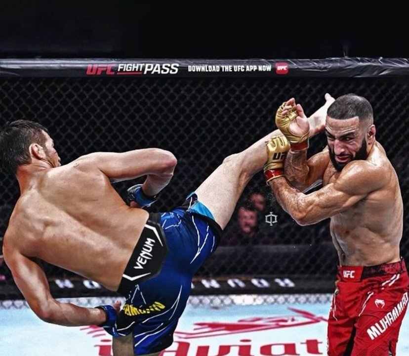 Изначально этот бой должен был пройти на UFC 310, но из-за травмы Мухаммада соперником Рахмонова стал Иан Гэрри. После победы Шавкат провел битву взглядов с чемпионом.
