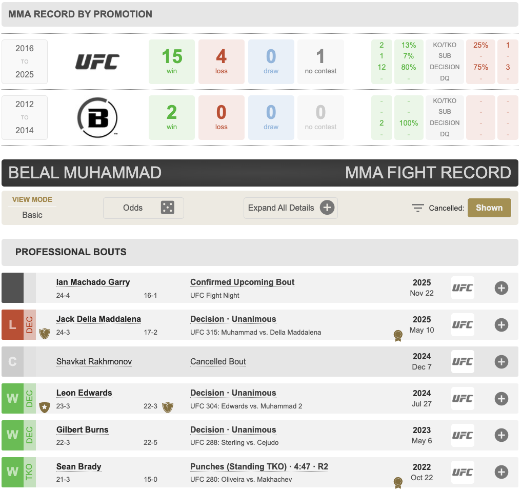 Мухаммад в своем последнем поединке 10 мая 2025 года на UFC 315 потерял титул чемпиона, проиграв австралийцу Джек Делла Маддалене. Теперь он получил бой против ирландца Иана Гэрри - в случае победы может снова стать претендентом на титул.