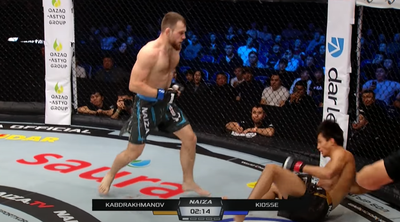 Чемпион казахстанской лиги Naiza Нурбек Кабдрахманов проиграл глухим нокаутом россиянину Николаю Киоссе в первом раунде, сообщает Спорт Шредингера.