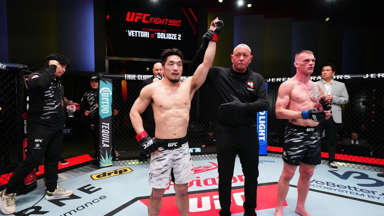 Южнокорейский боец Су Ен Ю, бывший чемпион казахстанской лиги Naiza в полулёгком весе, одержал свою вторую победу в UFC, сообщает Спорт Шредингера.