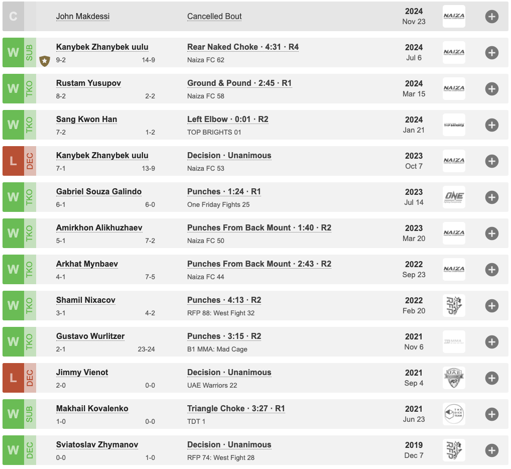 В прошлом Донченко выступал в казахстанском промоушене NAIZA, где становился чемпионом.