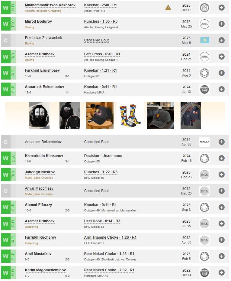 Если говорить именно о ММА, то его последний выход состоялся 16 августа 2025 года на турнире Octagon 77 - тогда казахстанец нокаутировал Фарзада Гадери.
