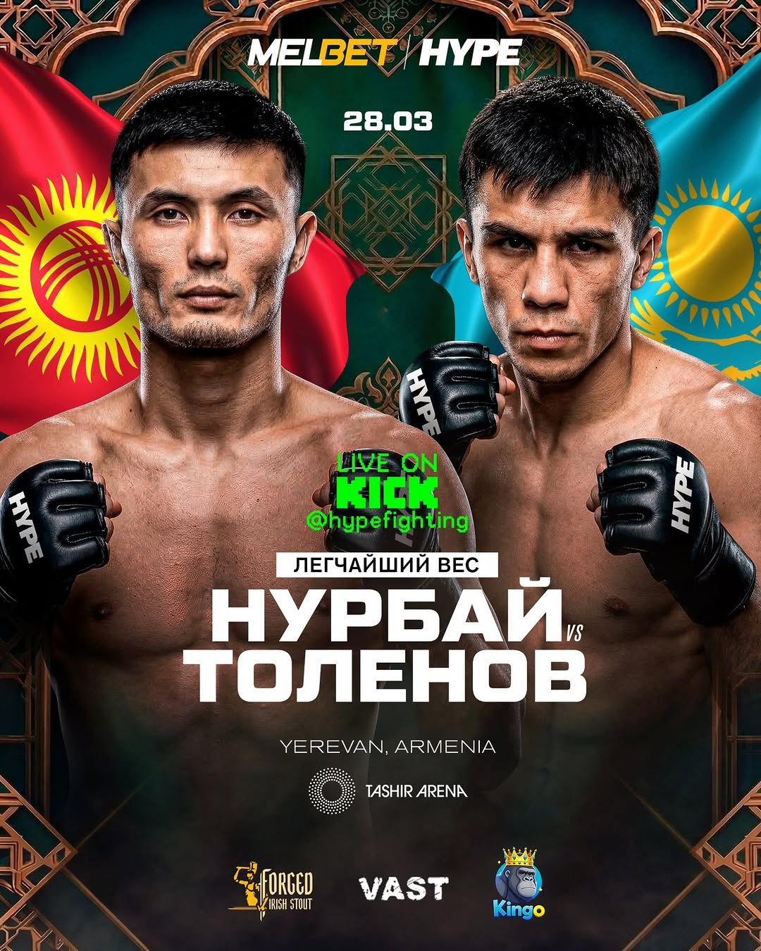 28 марта в Ереване пройдет турнир Hype FC Asia, который обещает стать одним из самых обсуждаемых событий весны в поп-ММА и смежных дисциплинах. Главным событием вечера станет бой Еркебулана Токтара и Марселя Нурланбек уулу. Для казахстанских болельщиков кард представляет особый интерес: в Ереване также выступят Багдат Жубаныш, Ерасыл Акранбек и Тимур Куаныш.