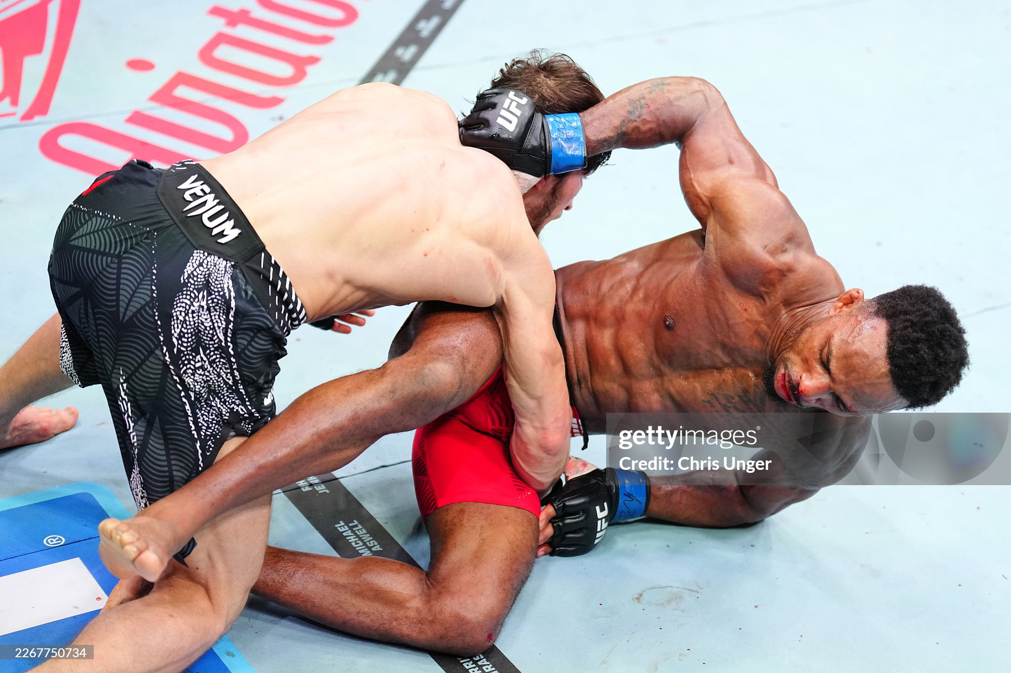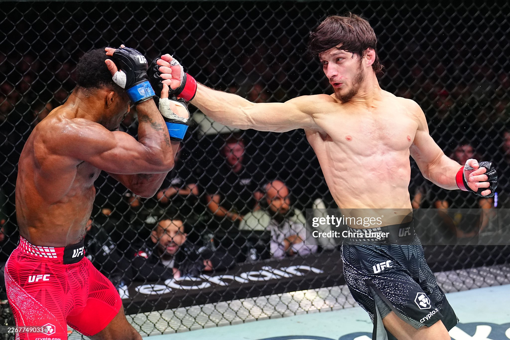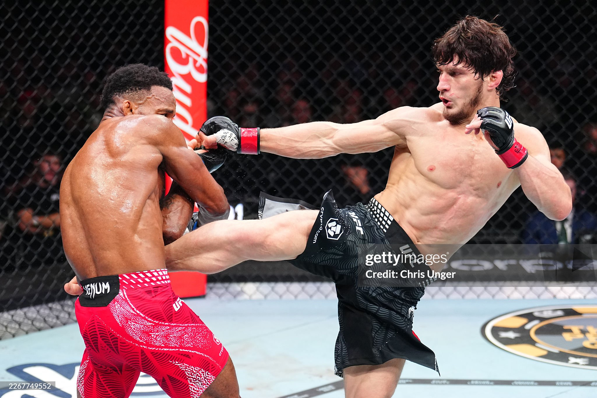 То же самое можно сказать и про бэкфисты. Он выбрасывал их из слишком дальней дистанции и из неудобного положения, часто ставя переднюю ногу между ногами соперника. Чтобы такие удары доходили до цели, нужны либо очень длинные руки, либо идеальный тайминг, а в этом бою не было ни того, ни другого.