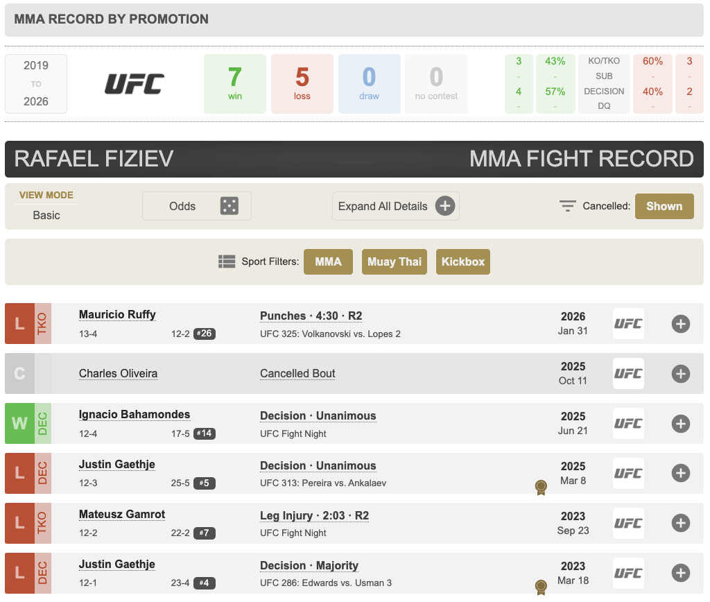 Физиев потерпел четвертое поражение в пяти последних боях UFC Фото: UFC