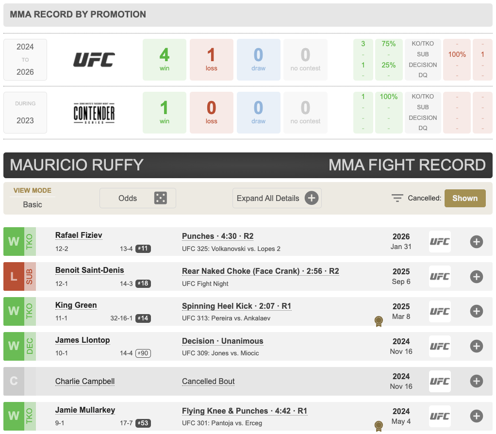 Для Руффи (13–2) этот успех стал возвращением на победную тропу после поражения от Бенуа Сен-Дени. Победа над девятым номером рейтинга позволила бразильцу существенно улучшить свои позиции в легком весе UFC.