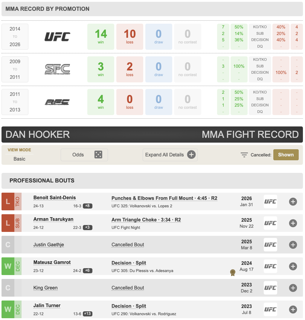 Для Хукера (24–14) это второе поражение подряд, что ставит под вопрос его дальнейшие титульные амбиции.