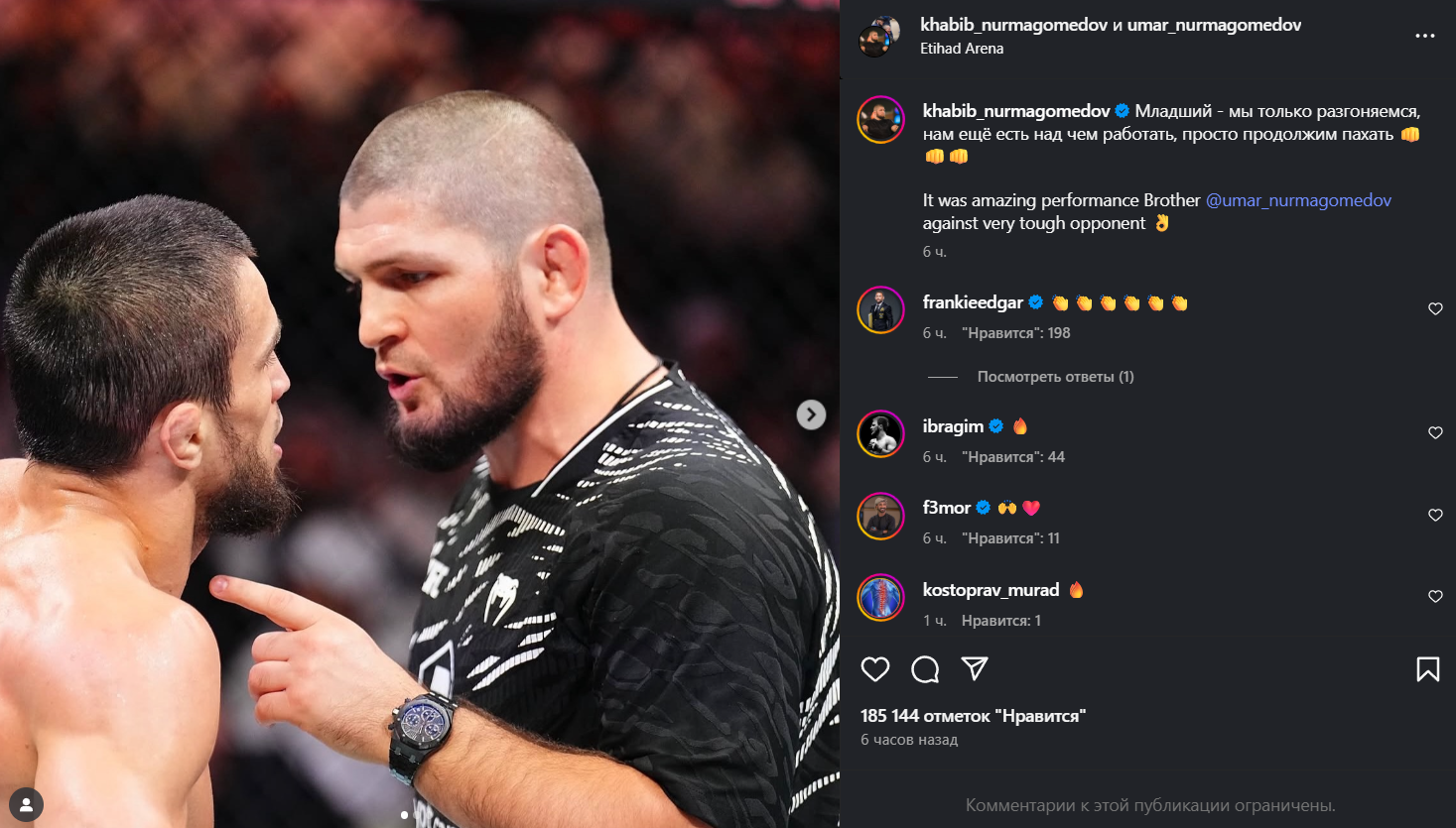 Хабиб Нурмагомедов отреагировал на победу Умара на UFC 321