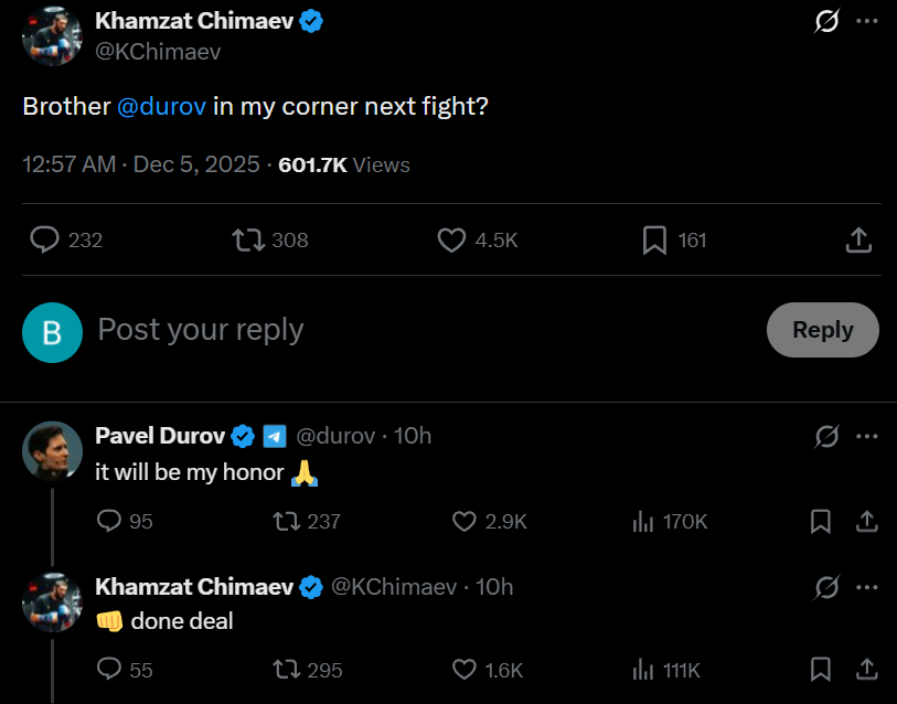 Хамзат Чимаев позвал в свой угол Павла Дурова