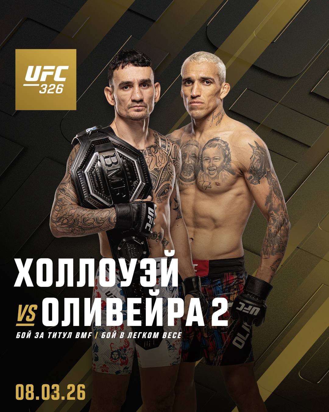 Поединок за титул BMF между Максом Холлоуэем и Чарльзом Оливейрой возглавит турнир UFC 326, который состоится 8 марта, сообщает Спорт Шредингера.