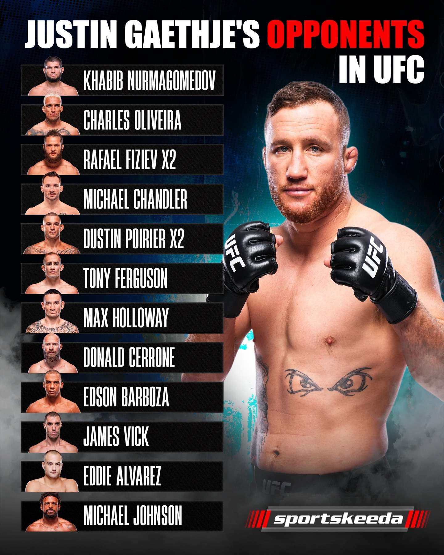 Из-за пробелов в борьбе Джастину не удалось стать полноценным чемпионом UFC. Однако фанаты любят его за активный стиль, агрессию и зрелищные поединки. Он получил 15 бонусов за "Лучший бой" за карьеру, трижды побеждал в номинации "Бой года" (2017, 2021, 2024) и стал первым бойцом в истории UFC, дважды завоевав временный пояс.