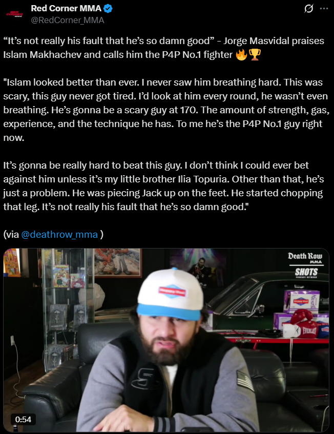 Популярный экс-претендент Хорхе Масвидаль восхитился победой россиянина Ислама Махачева (28-1) над чемпионом UFC в полусреднем весе Джеком Делла Маддаленой (18-3), сообщает Спорт Шредингера.