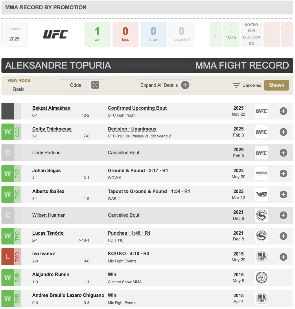 Официальный рекорд Александра Топурии в ММА – 6 побед и 1 поражение. Его главная поддержка - младший брат Илия, чемпион UFC в полулегком и легком весах, который неоднократно подчеркивал: именно Александр является "мозгом команды".