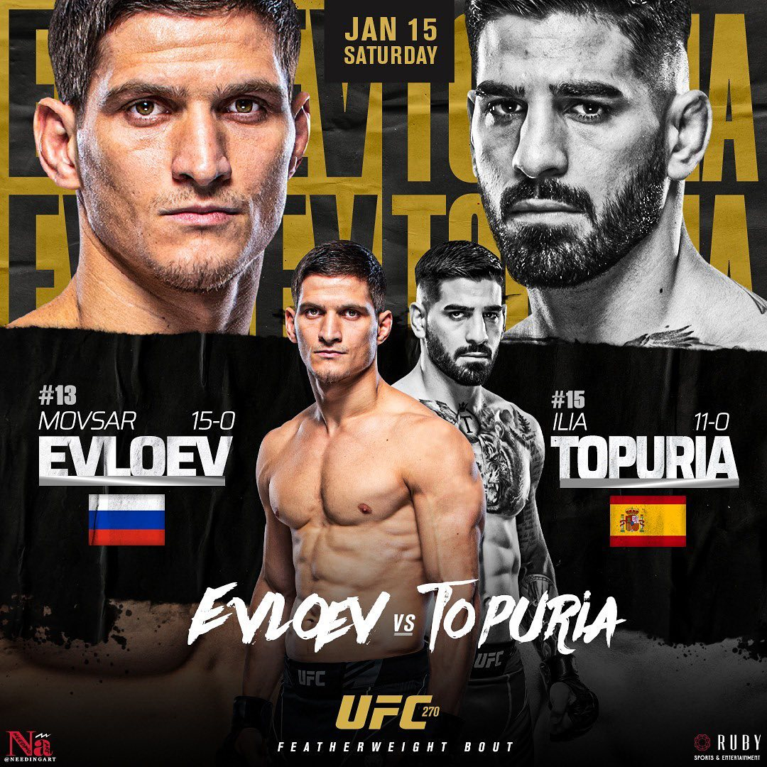 В январе 2022 года на UFC 270 планировался бой Евлоева и будущего чемпиона Илии Топурии. Оба шли непобежденными: Евлоев – 15-0 и 5-0 в UFC, Топурия – 11-0 и 3-0 в UFC.