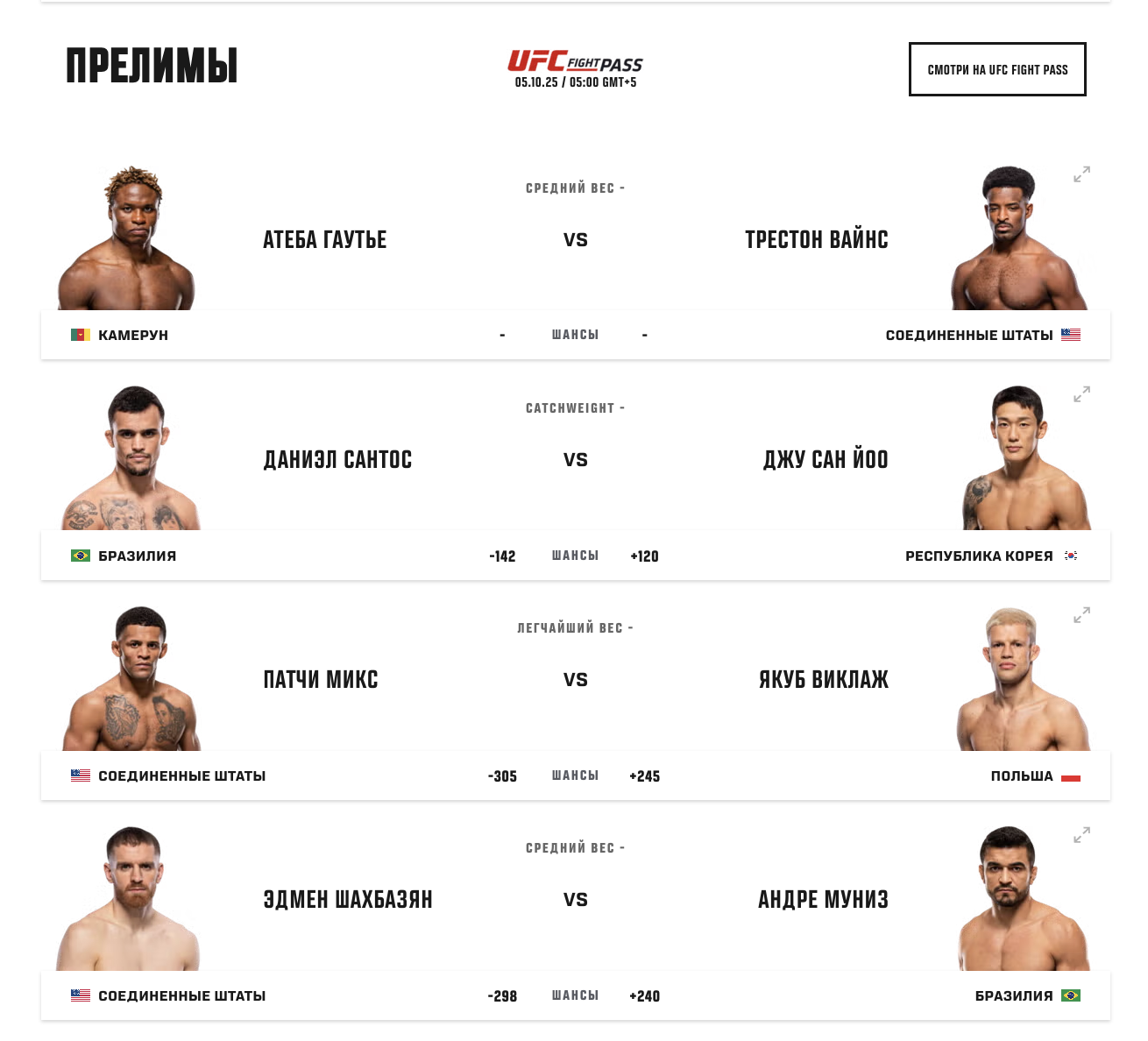 Турнир в прямом эфире покажет UFC Fight Pass по подписке.