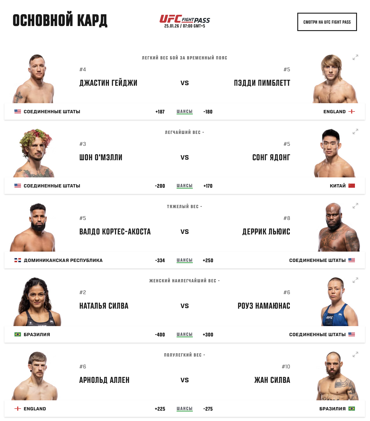 Прямая трансляция UFC 324 - Гейджи vs Пимблетт: где смотреть и полный кард