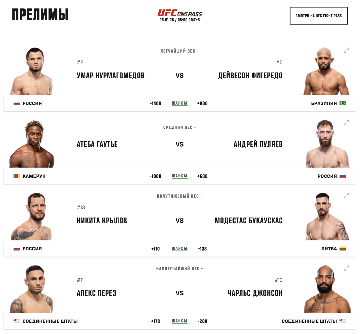 🇷🇺 Умар Нурмагомедов (Россия, №2, 19–1) vs 🇧🇷 Дейвисон Фигейреду (Бразилия, №6, 25–5–1)