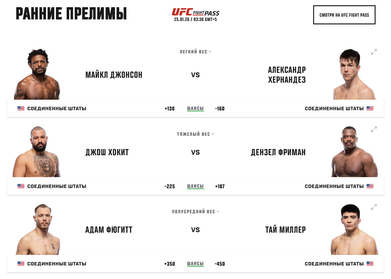 🇺🇸 Майкл Джонсон (США, 24–19) vs 🇺🇸 Александр Эрнандес (США, 18–8)