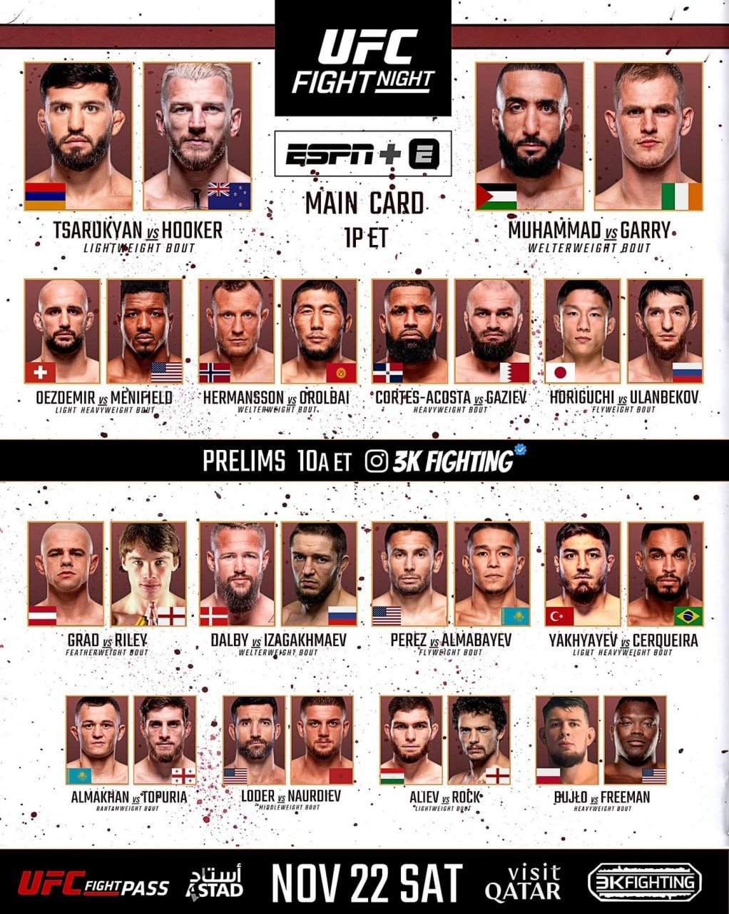 Весь турнир можно будет посмотреть на UFC Fight Pass по подписке. Ссылки будут в нашем телеграм-канале.