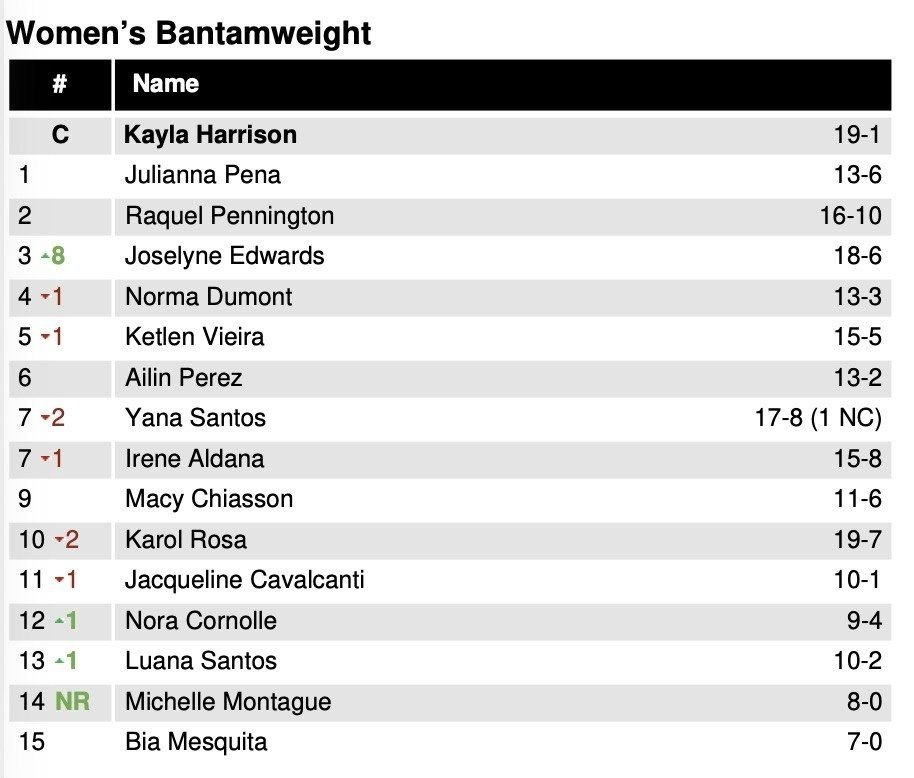 Здесь произошли самые большие перемены: Джозелин Эдвардс взлетела сразу на 8 позиций и теперь занимает 3-е место. На прошедшем турнире она победила Норму Дюмонт единогласным решением судей.