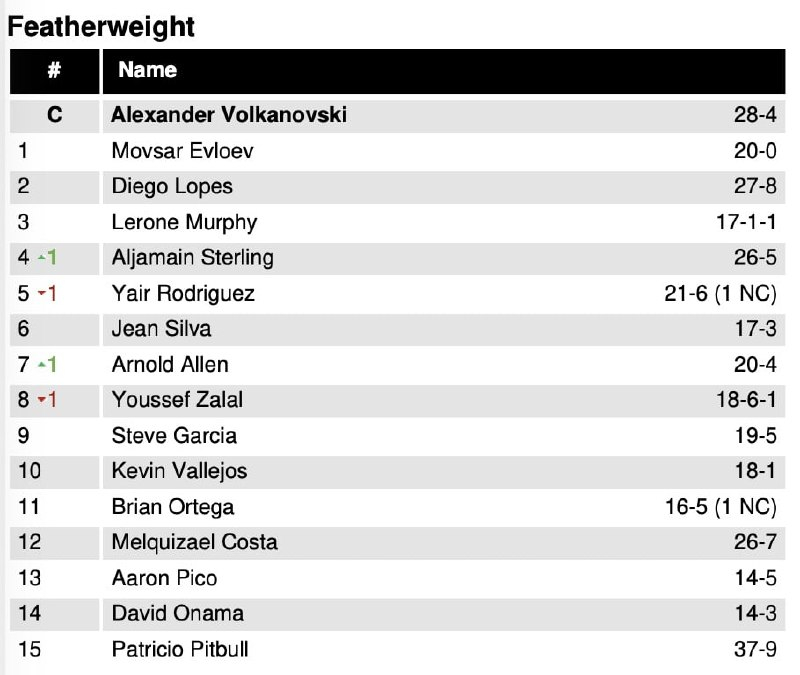 UFC обновили рейтинги после прошедшего турнира UFC Vegas 116, который возглавили Алджамейн Стерлинг и Юссеф Залал. Спорт Шредингера рассказывает о главных изменениях: кто взлетел в топ, а кто сдал позиции.