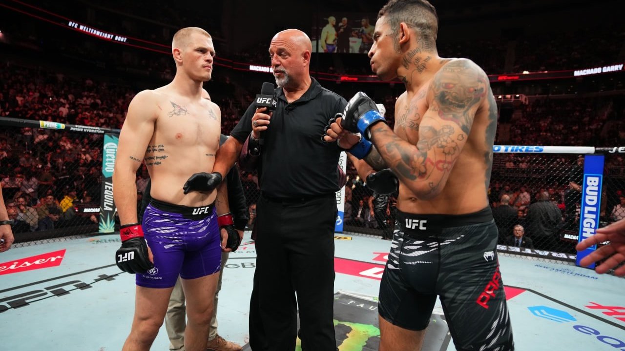Иан Гэрри победил Карлоса Пратеса единогласным решением судей (49-46, 48-47, 48-47), остановив впечатляющую серию нокаутов бразильца. До этого боя представитель команды "Боевые ботаники" одержал четыре досрочные победы подряд. Таким образом, ирландец закрыл поражение от Шавката Рахмонова, которое потерпел на UFC 310.
