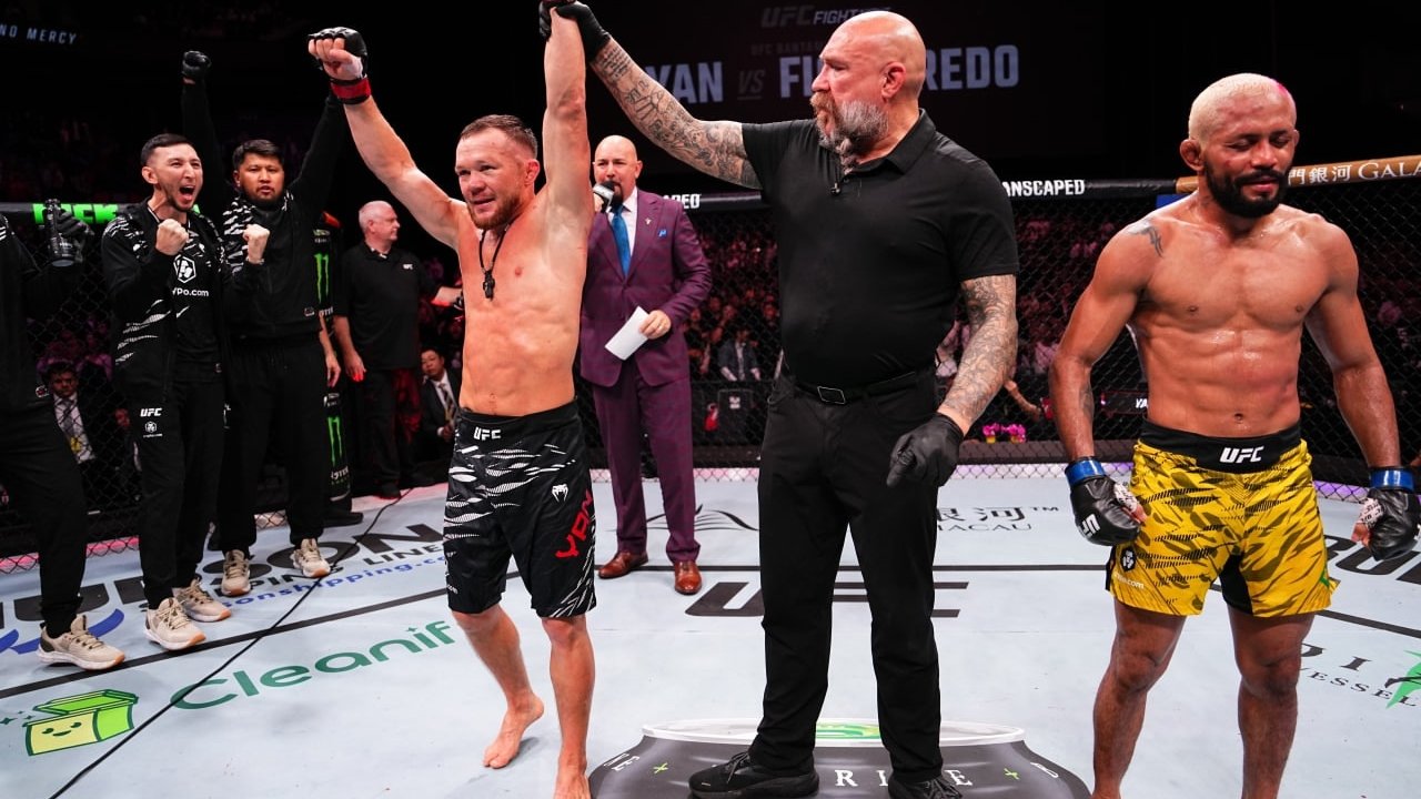 В главном событии вечера в разборке бывших чемпионом Петр Ян победил Дейвесона Фигередо единогласным решением судей (у всех 50-45) и вернулся в чемпионскую гонку. Ян вызвал чемпиона UFC Мераба Двалишвили на реванш, сказав что победил главного претендента на титул.
