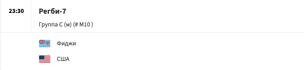 В 18:30 стартует матч по регби Австралия - Самоа. В 19:00 - Аргентина - Кения, а в 19:30 - Франция - США.
