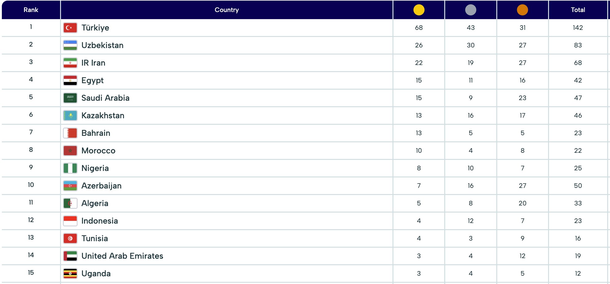 На этих Играх Казахстан поднимается с 7-го на 6-е место в общем медальном зачёте.