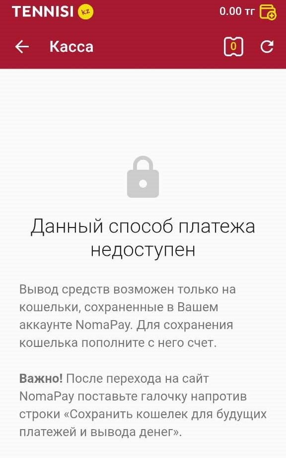 При снятии необходимо сделать хоть одно пополнение и запомнить это платежное средство (привязка карты). Иначе даже при при пополнении, NomaPay не будет знать, куда ему выводить деньги.