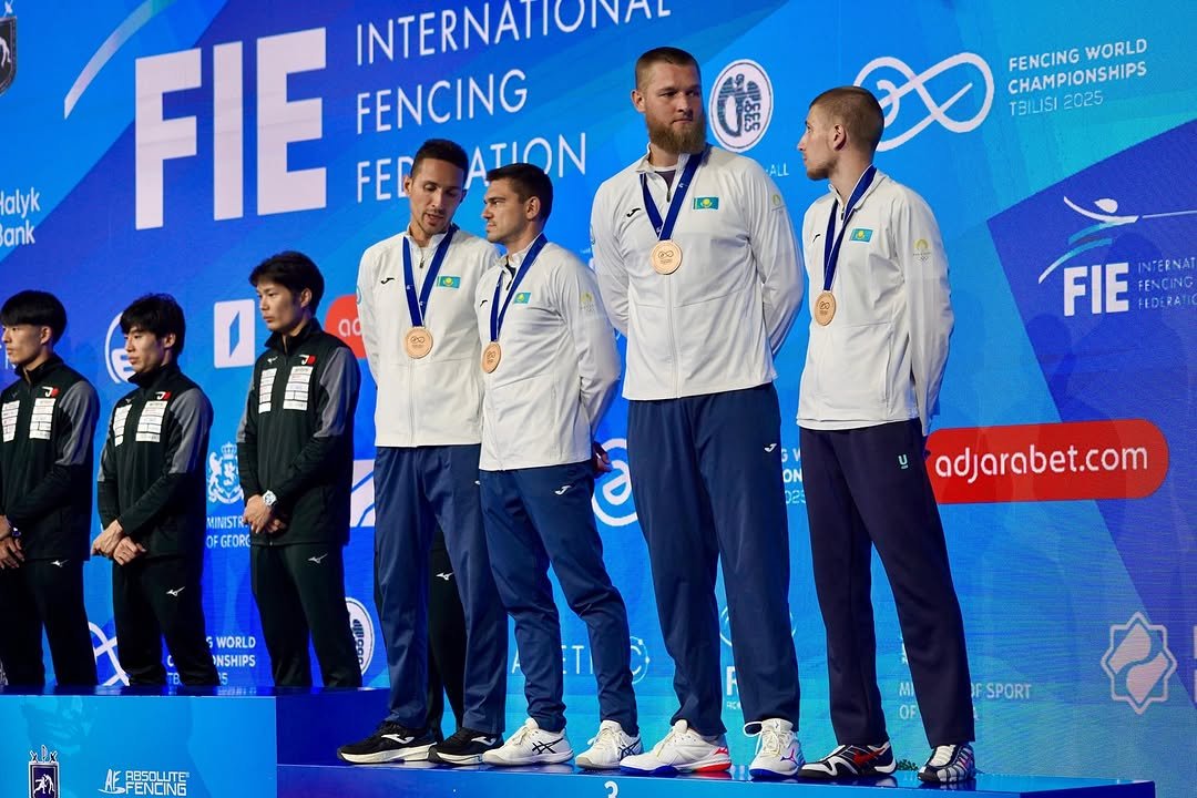 Команда стала третьей в шпаге - это первая медаль страны на ЧМ. В четвертьфинале сборная Казахстана победила действующих чемпионов мира из Италии, в полуфинале уступила серебряным призерам Олимпиады-2024 Японии, а схватке за третье место победилу Францию, которая за последние 21 год взяла три ОИ (2004, 2008, 2016).