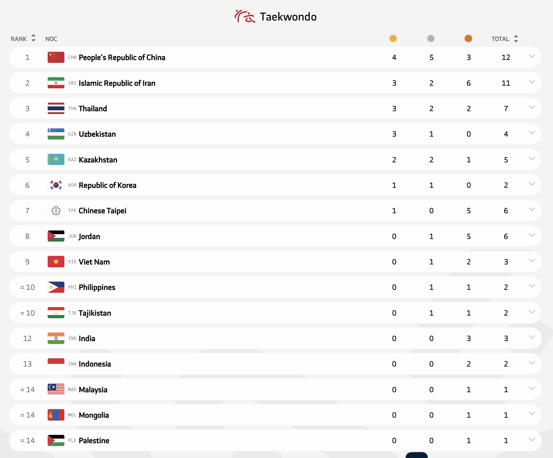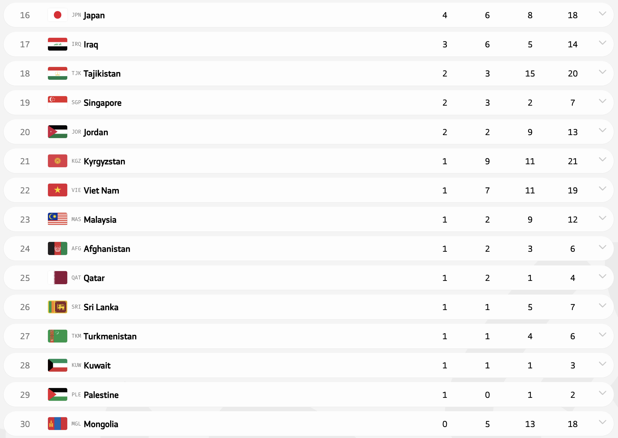 Медальный зачет юношеских Азиатских игр-2025: