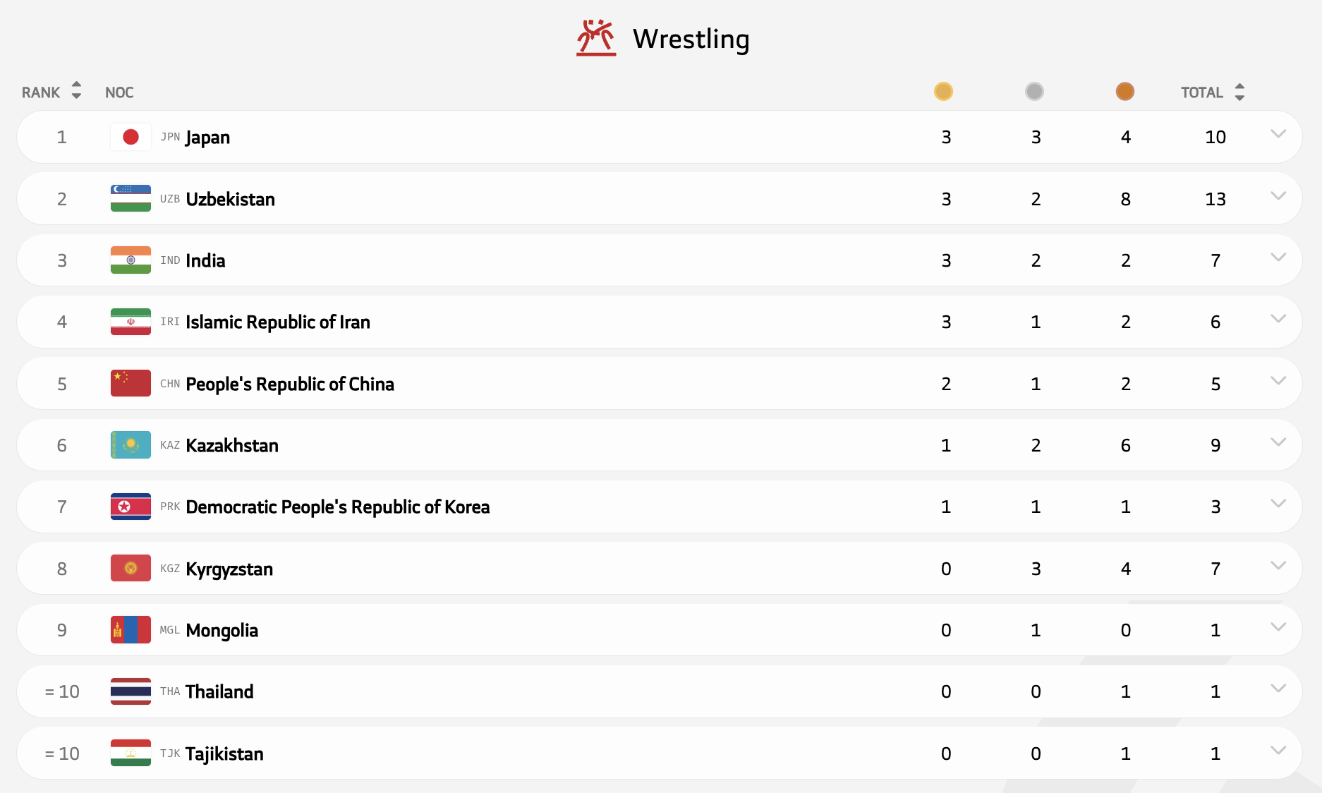 В борьбе Казахстан взял девять медалей, но стал шестым в медальном зачете. Единственное золото у Бекасыла Асамбека.