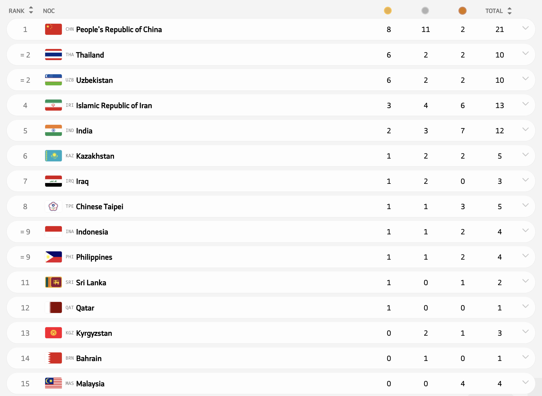 Медальный зачет юношеской Азиады-2025: