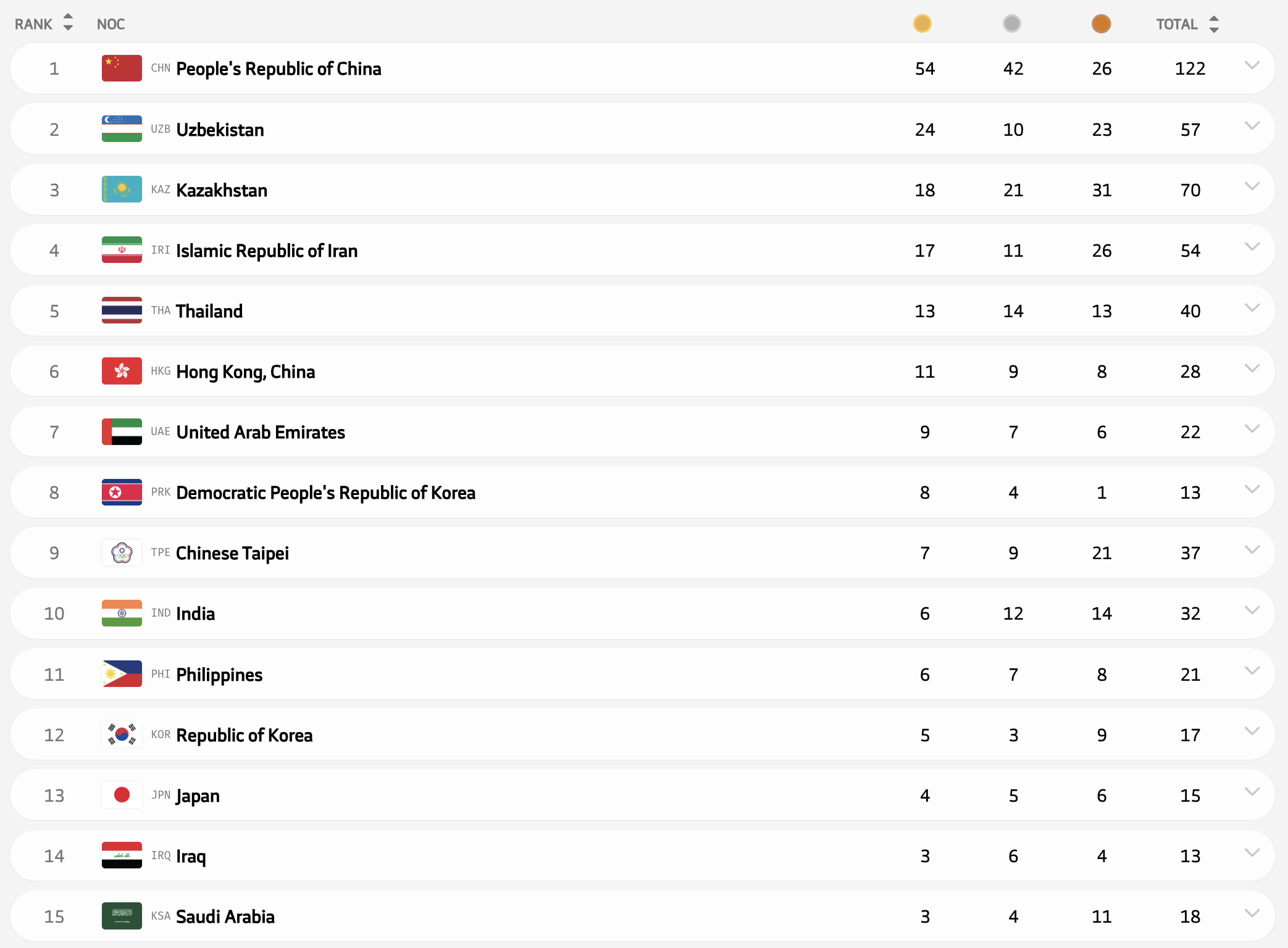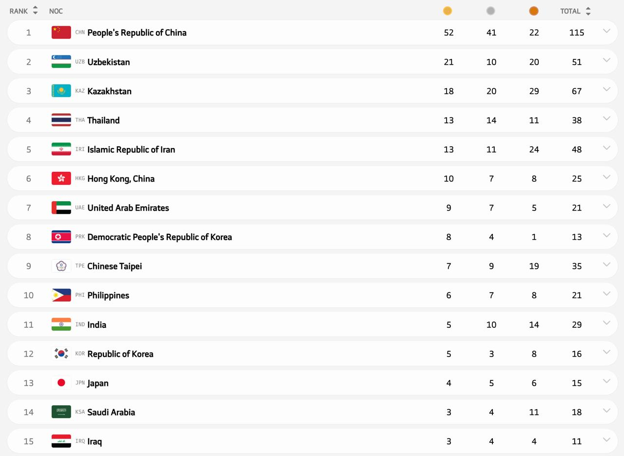 Но после этого спортсмены из Узбекистана смогли завоевать еще три золота и увеличили свой отрыв от Казахстана до шести золотых медалей.