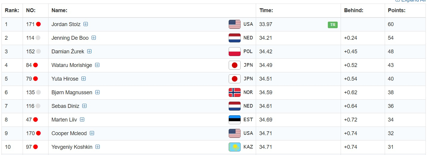 Победителем этапа стал американец Джордан Штольц – 33.97 (рекорд трассы).