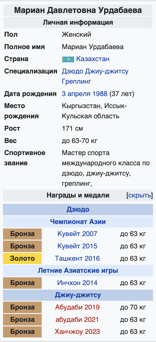 Журавлёва известна и по выступлениям в дзюдо - в 2016 году она стала чемпионкой Азии, а теперь пополнила копилку Казахстана золотой медалью Исламиады.