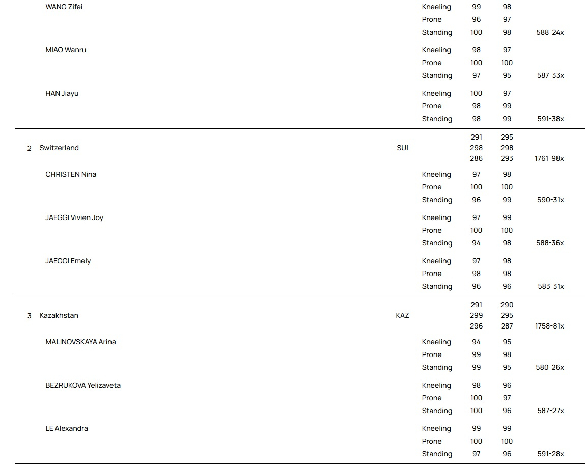 Золотую медаль завоевал Китай. Второе место осталось за Швейцарией. Чемпионат мира по стрельбе пройдет до 18 ноября.