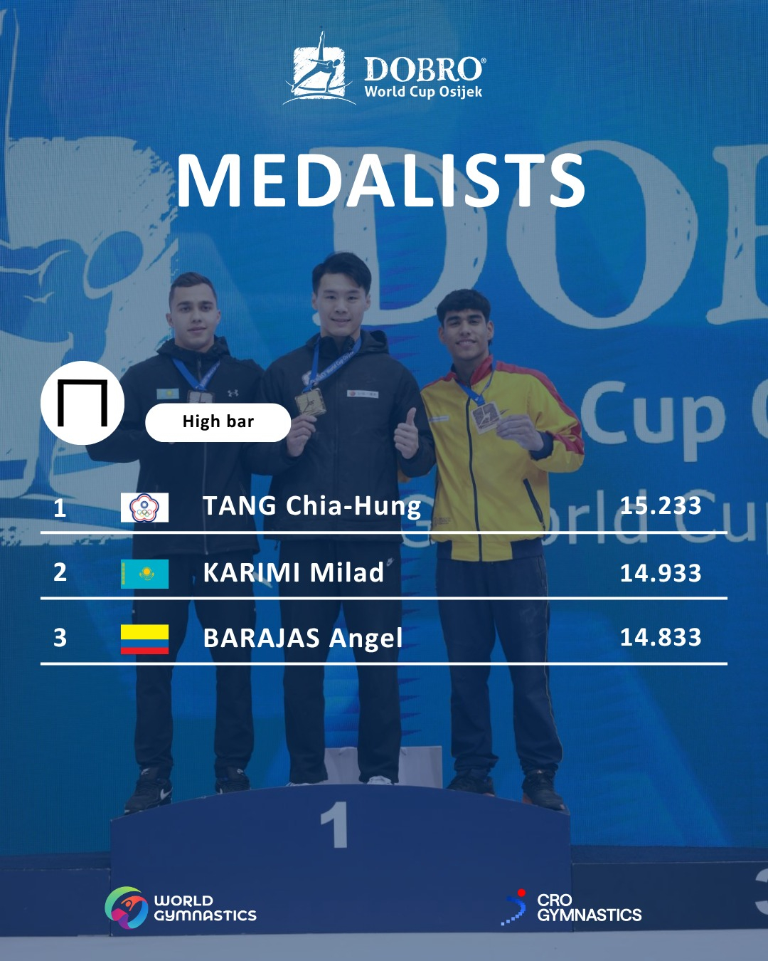 11 апреля серебро и бронзу в упражнениях на коне взяли Зейнолла Идрисов и призёр Олимпиады в Париже Нариман Курбанов.