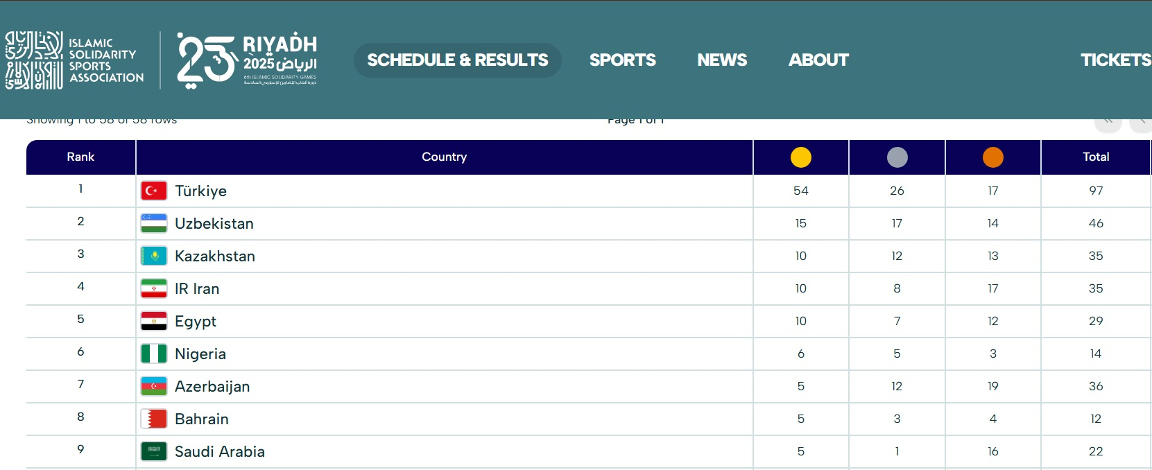 У Казахстана к текущему моменту 35 медалей: 10 золотых, 12 серебряных и 13 бронзовых. В общекомандном зачете Казахстан идет третьим, уступая Турции (54-25-16) и Узбекистану (15-17-14)