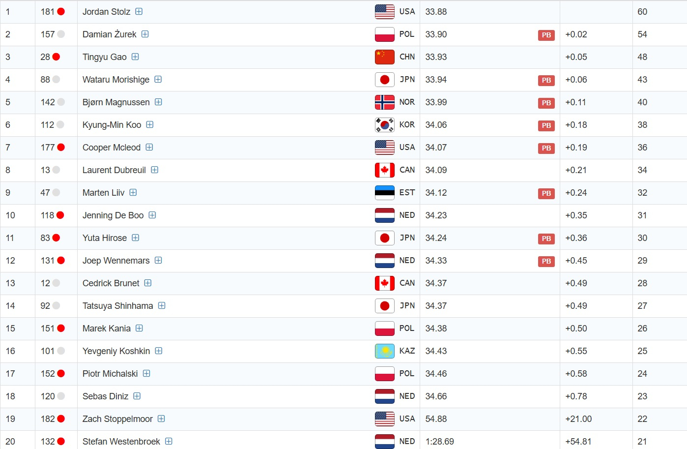 Победителем забега стал американец Джордан Штольц со временем 33.88. Время Кошкина - 34.43.